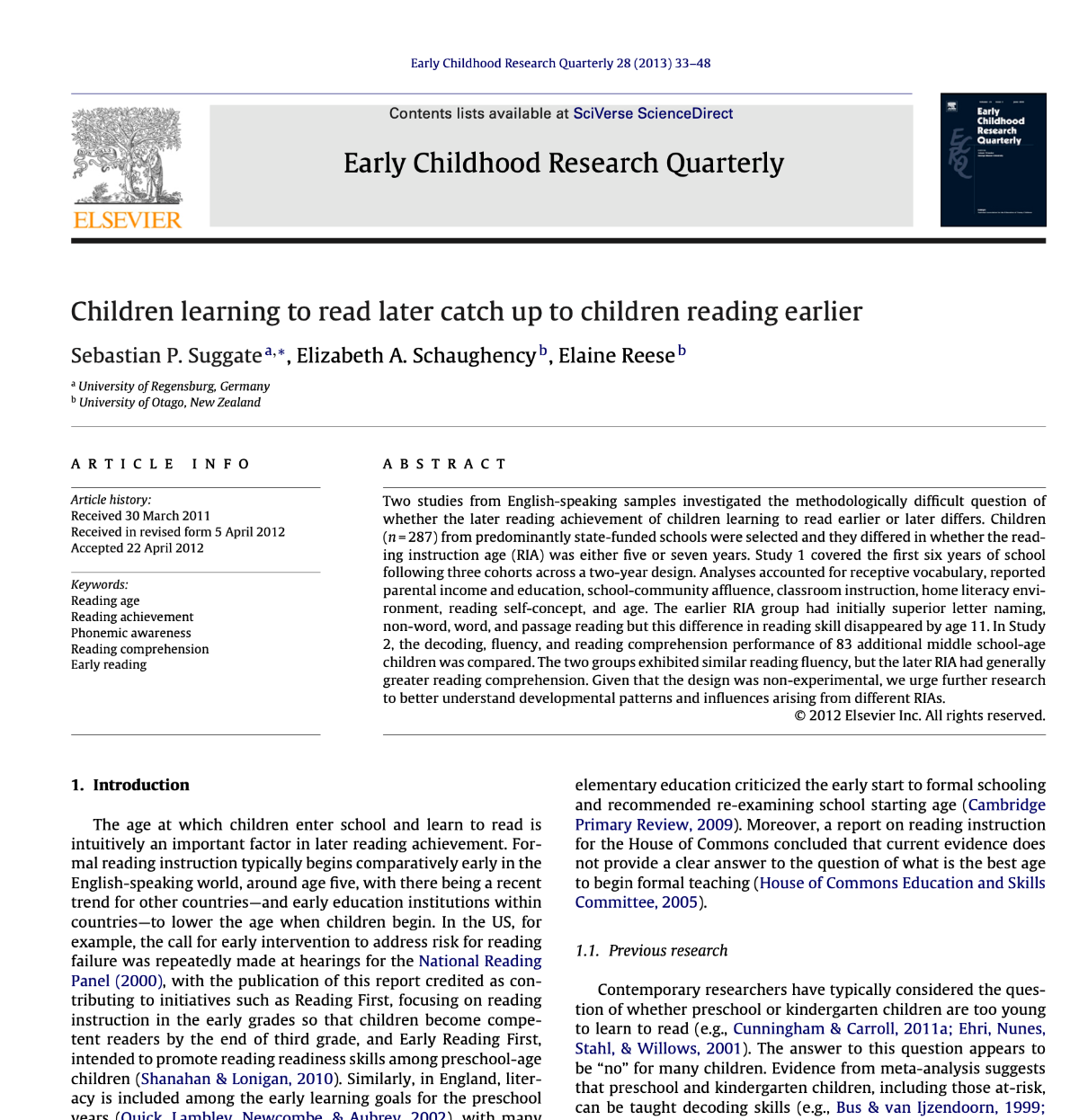 Children learning to read later catch up to children reading earlier